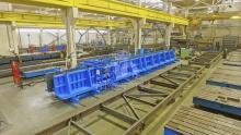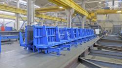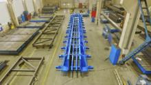 Оборудование рассчитано на выпуск колонн длиной до 18 метров. Опорная рама состоит из двух секций по 9 метров, что не только удобно при транспортировке, но и позволяет выставить разные размеры нижней и верхней частей — например, 900 мм внизу и 600 мм вверху. Длину изделия легко менять установкой отсекателей, которые крепятся при помощи постоянных магнитов, обеспечивая точную геометрию и экономию времени.