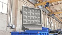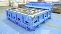 Переналадка формы позволяет в рамках одной оснастки получать оба типа изделий без изменения основной конструкции. Форму основания задают радиусная формующая поверхность, а также верхние и нижние вкладыши. Основание борта формируется двумя элементами — подвижным и съёмным, три наружных борта выполнены откидными, что обеспечивает удобство распалубки и стабильную геометрию изделия.