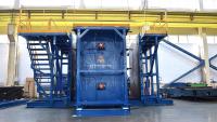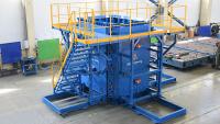 Установка для изготовления объемных шахт для грузовых и пассажирских лифтов представляет собой обогреваемую наружную опалубку и сердечник. Борта металлоформы откидываются, прикреплены к основанию шарнирами, форма может быть оснащена гидравлическими цилиндрами для откидывания бортов в стороны или сдвига бортов в стороны. В основании формы располагается гидравлическая система, которая помогает осуществить съем готового изделия с сердечника выталкиванием изделия вверх. Также по периметру конструкции в несколько рядов устанавливаются вибраторы, которые уплотняют бетонную смесь.